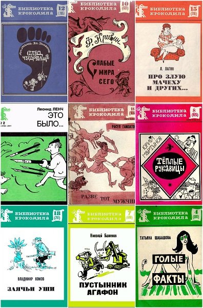 Библиотека Крокодила - серия 159 юмористических и сатирических брошюр, библиотека знаменитого журнала "Крокодил". Вышло более 1000 выпусков. Брошюрки маленькие, но смешные и с веселыми рисунками, карикатурами и шаржами.