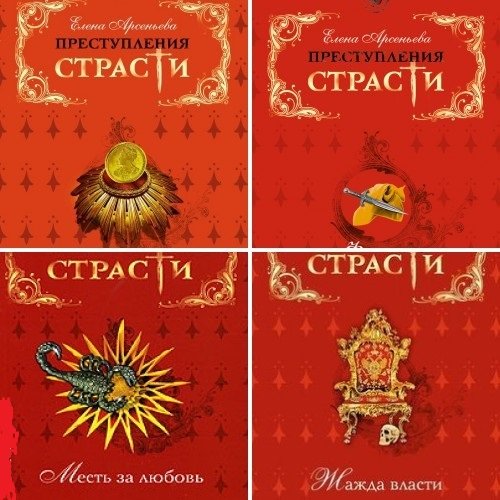 Описание: Преступления страсти - серия об исторических преступлениях разных коронованных особ и их фаворитов. Мотивы преступлений автор Елена Арсеньева назвала страстями и выдала их целых пять: Алчность, Жажда власти, Коварство, Ревность, Месть за любовь.